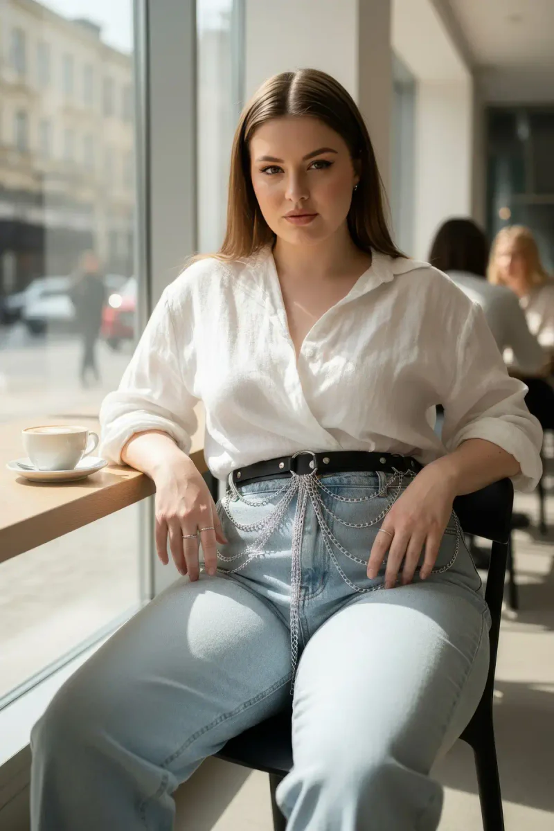Large Size Black Women's Belt with Multiple Chain Detail Outfit Accessory - APFT512
