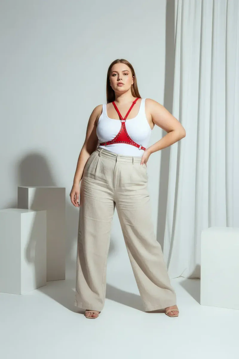 Large Size Red Women's Belt Leather Stud Detailed Body Accessory - APFT850