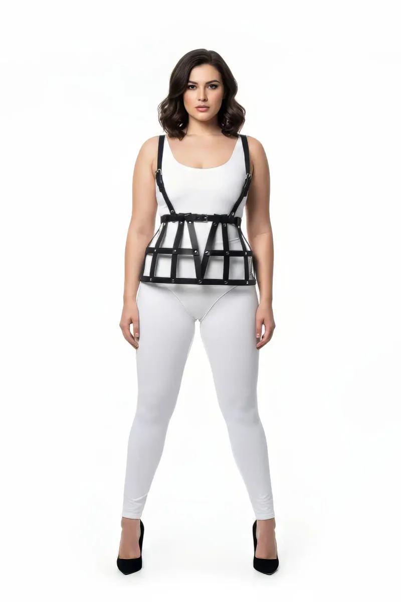 Leather Harness Skirt for Women - Black Strappy Cage Design