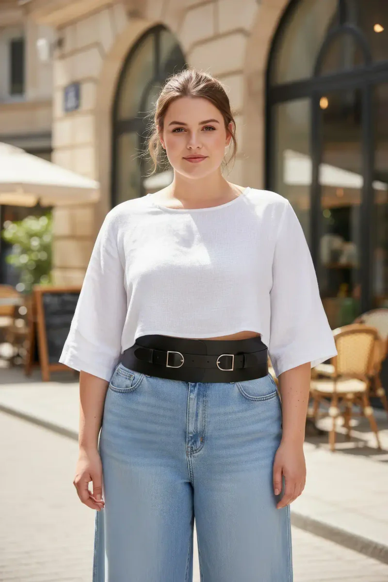 Plus Size Black Women's Belt Wide Corset Model with Double Buckle - APFT875
