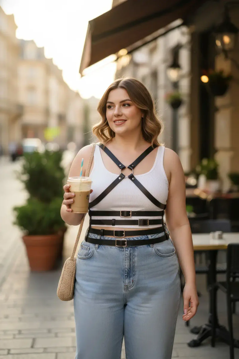 Plus Size Black Women's Leather Belt Cross Strap Body Harness Body Accessory - APFT911