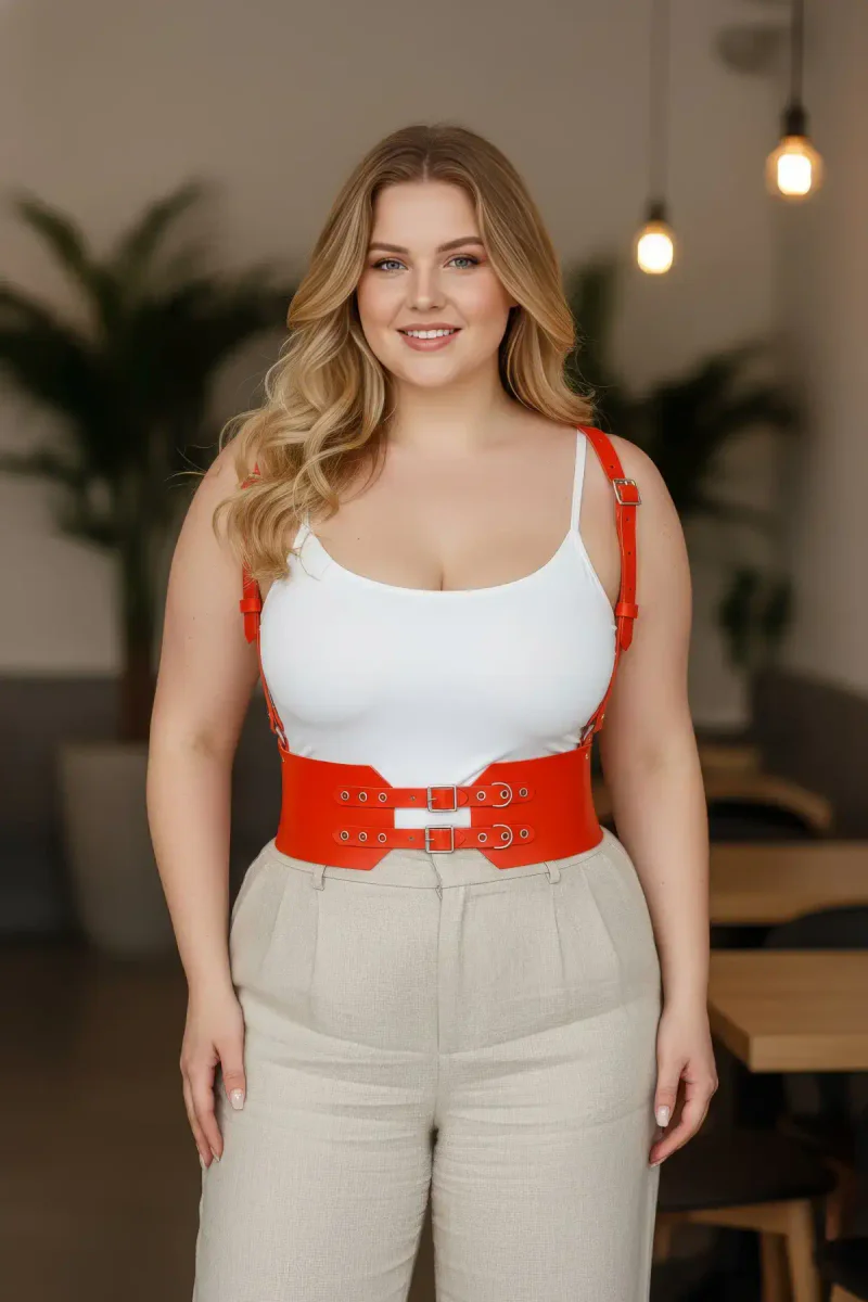 Plus Size Orange Women's Belt Suspender Corset Look Double Buckle Leather - APFT853