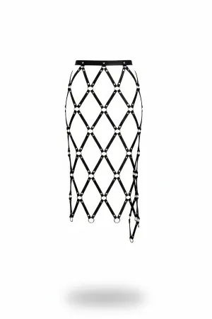 Leather Harness Skirt for Women - Black Strappy Cage Design