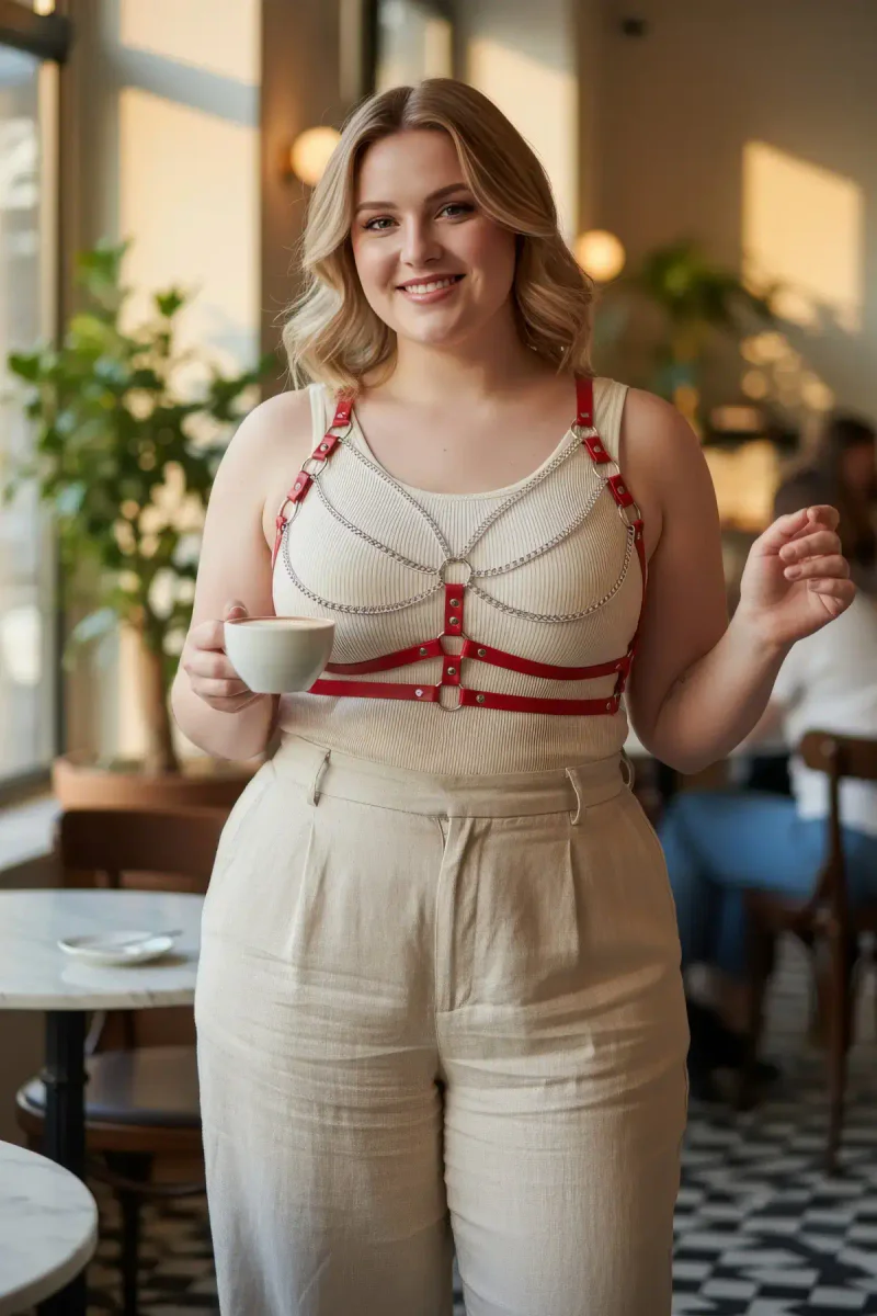 Plus Size Red Women's Belt Chain Detailed Leather Body Accessory - APFT808