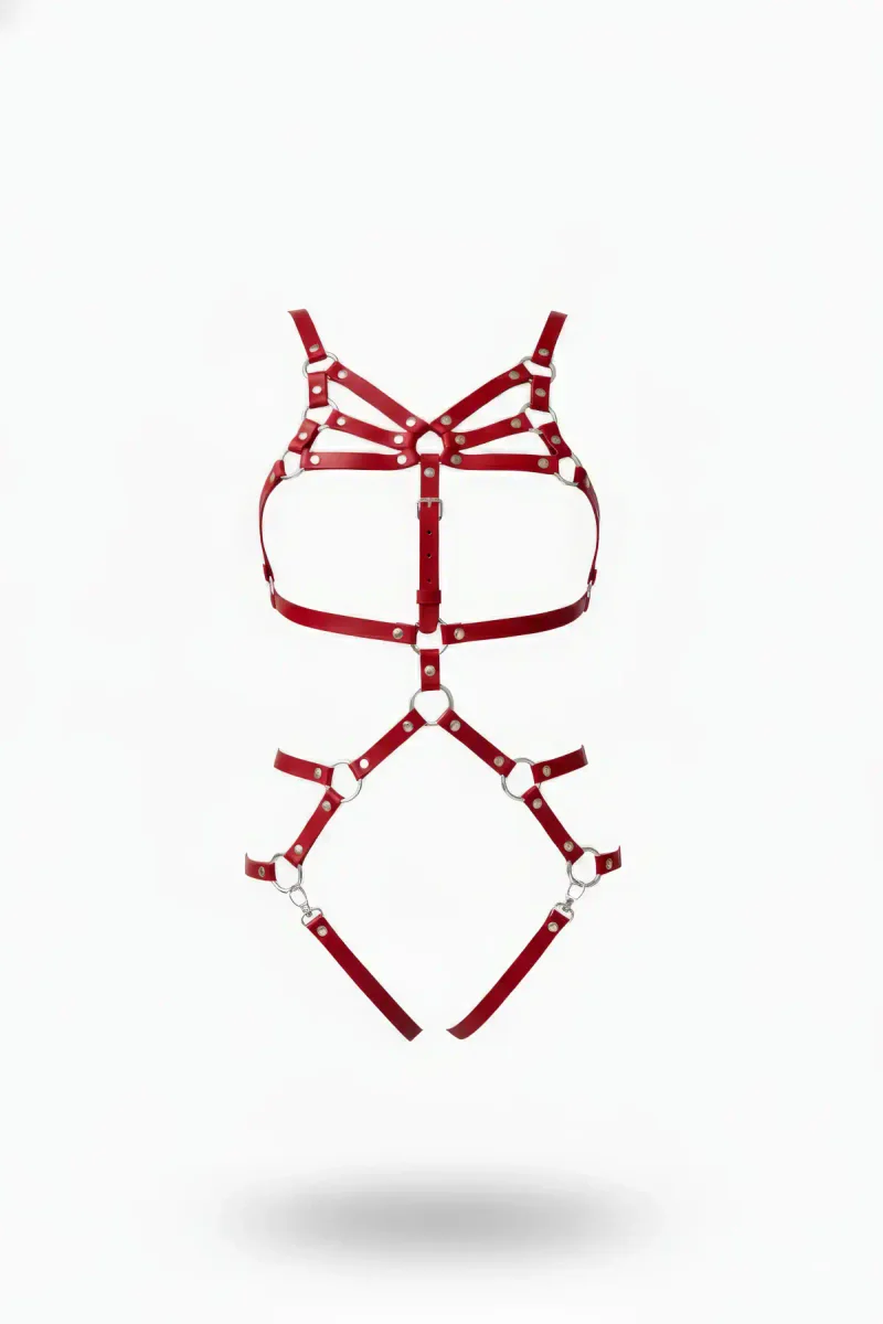 Red Body Harness Leather Ring Detailed Body Accessory - APFT339