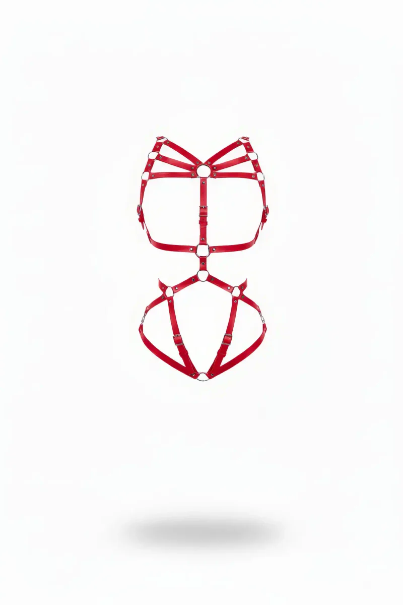 Red Body Harness Leather Ring Detailed Body Accessory - APFT339