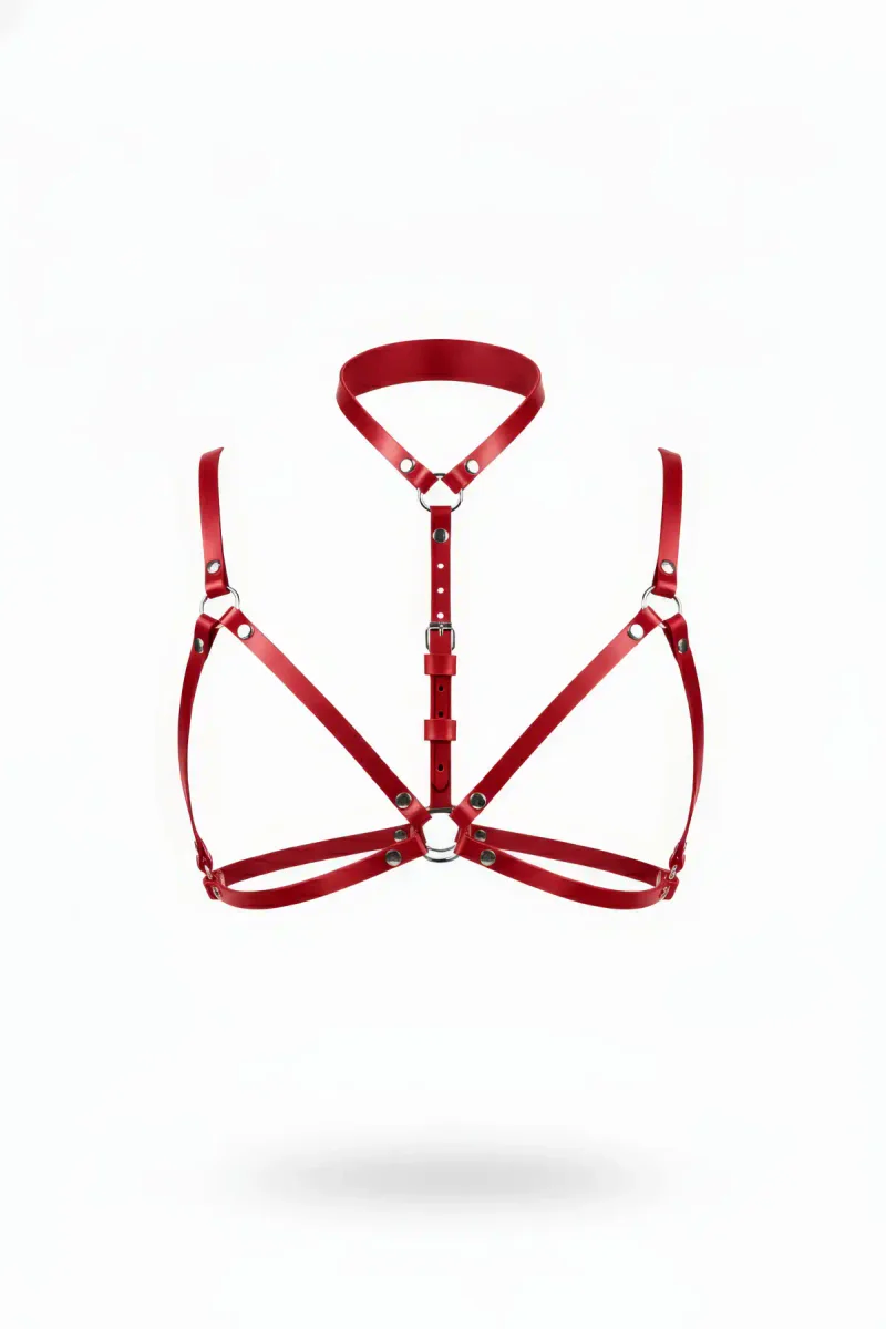 Home/Womens Harness/Chest Harness/Red Chest Harness Leather Neck Collar with O Ring Detail - APFT197