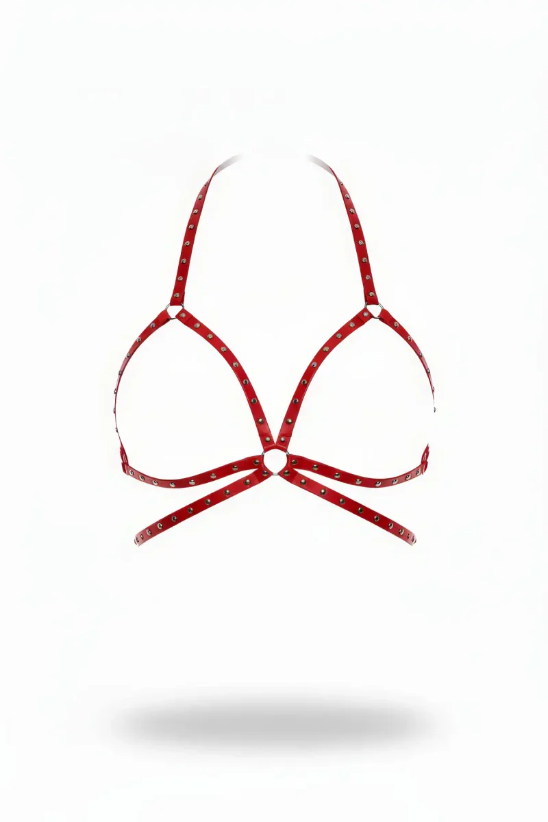 Home/Womens Harness/Chest Harness/Red Chest Harness Staple Detailed Leather Body Decoration - APFT500