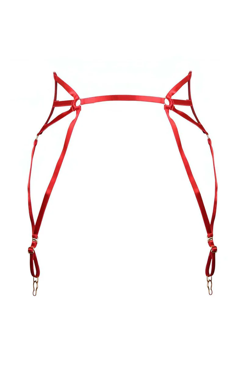 Red Garter Harness for Women - Adjustable Straps & Clips