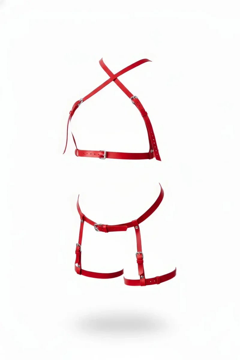 Red Garter Harness Leather Buckle Body Leg Set - APFT865
