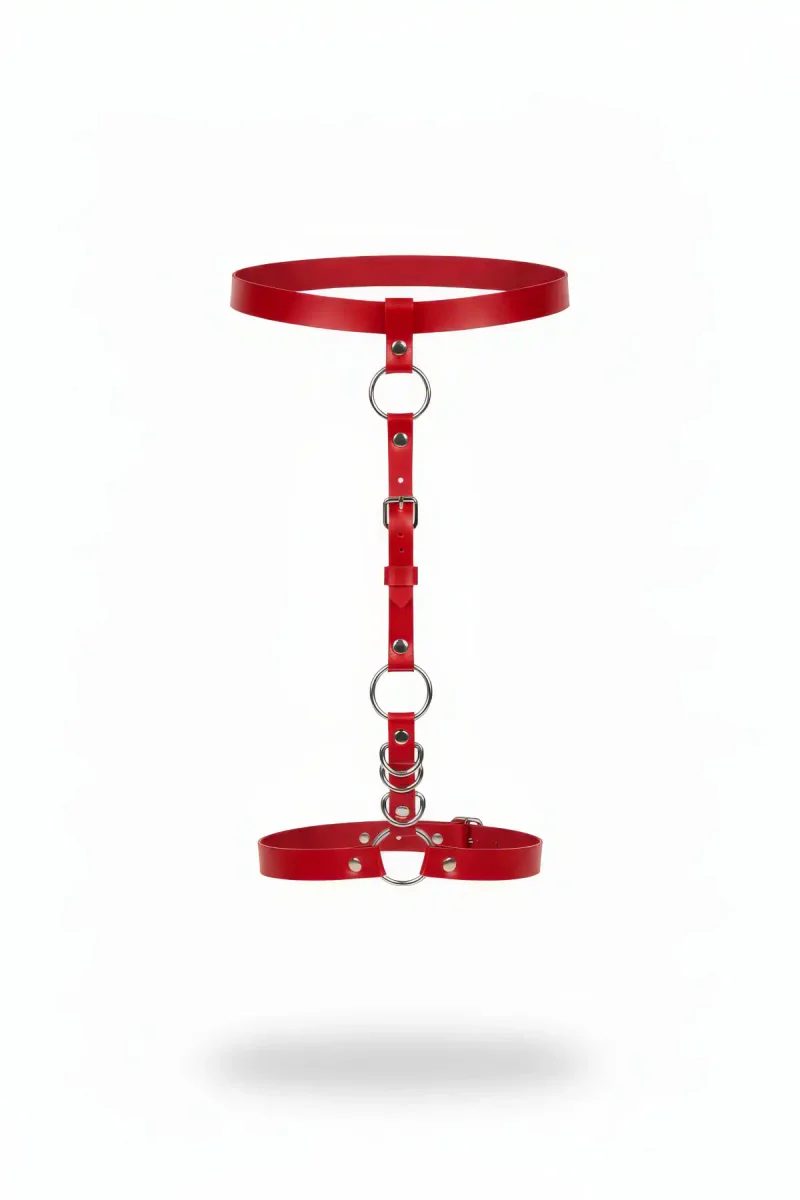 Red Garter Harness with Faux Leather Ring Detail - APFT773