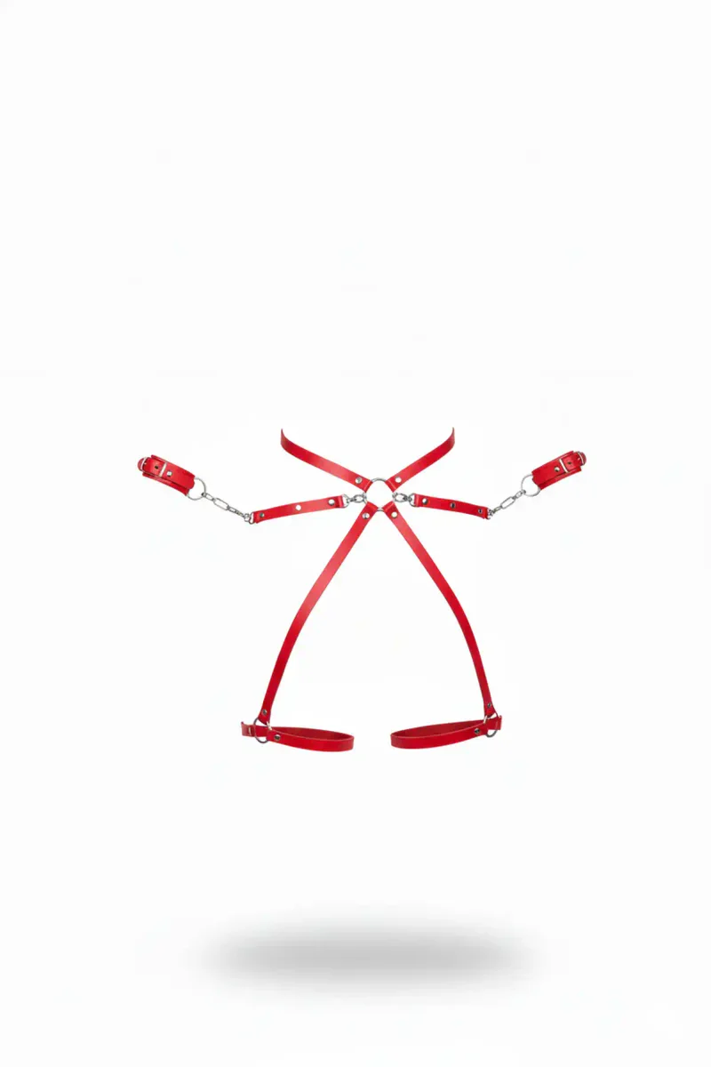 Red Harness Suit Leather Material Chain Detailed Body Set - APFT772