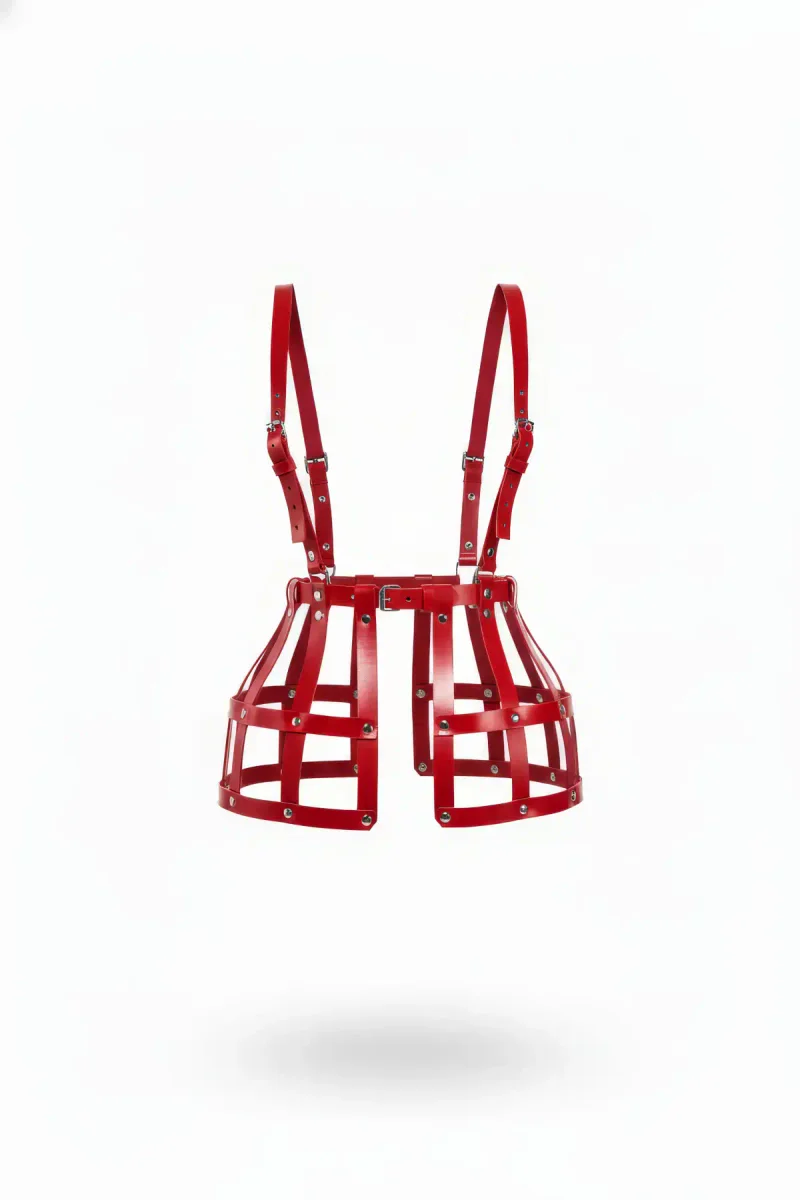 Red Skirt Studded Leather Cage Corset - APFT983