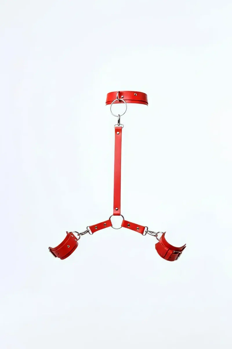 Red Whip - Handcuffs Leather Neck And Wrist Link Set - APFT459