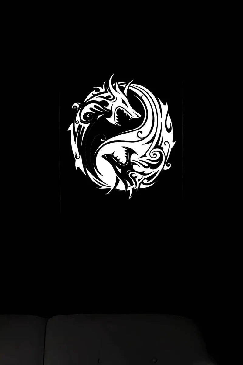 Reflective Yin Yang Dragon Symbol Leather Wall Painting