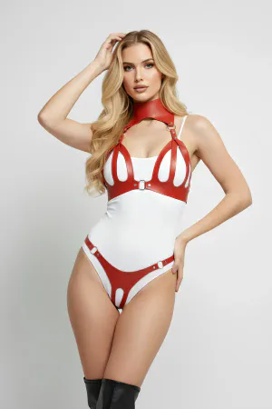 Claret Red Harness Suit with Leather Buckle High Collar Body Accessory - APFT1089