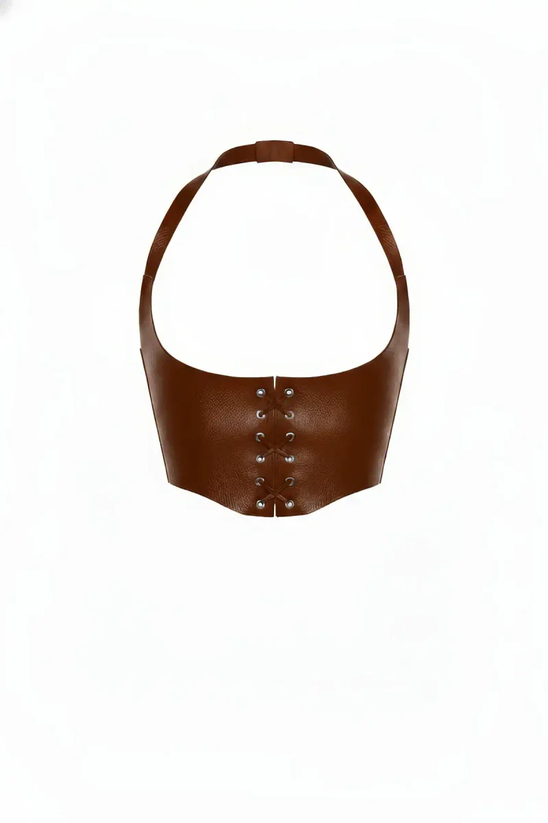 Tan Women's Belt Laced Corset Detailed Wide Waist Accessory - APFT613