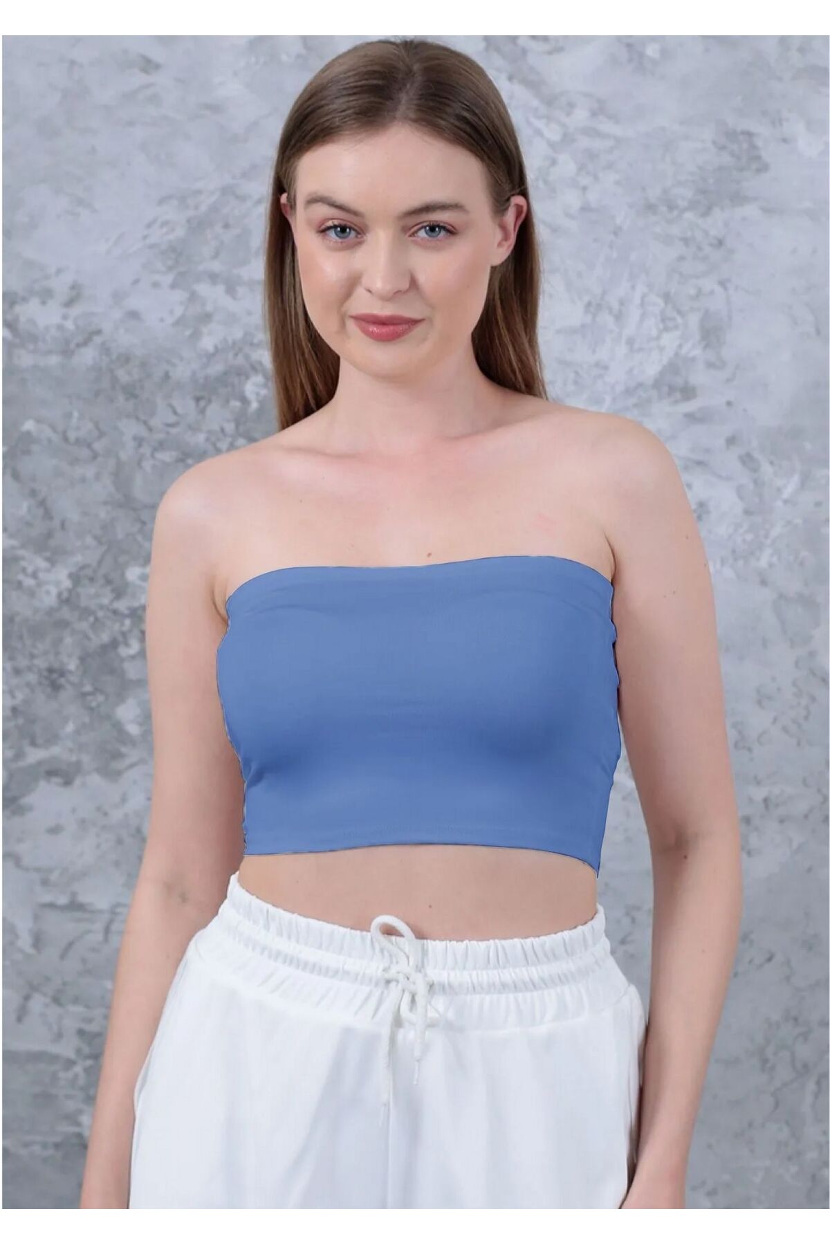 WAYS Kadın Mavi Straplez Crop Büstiyer Günlük & Şık Üst Esnek Kumaş