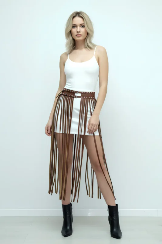 Leather Tassel Skirt – Stylish Thin Tassel Skirt With Adjustable Harness