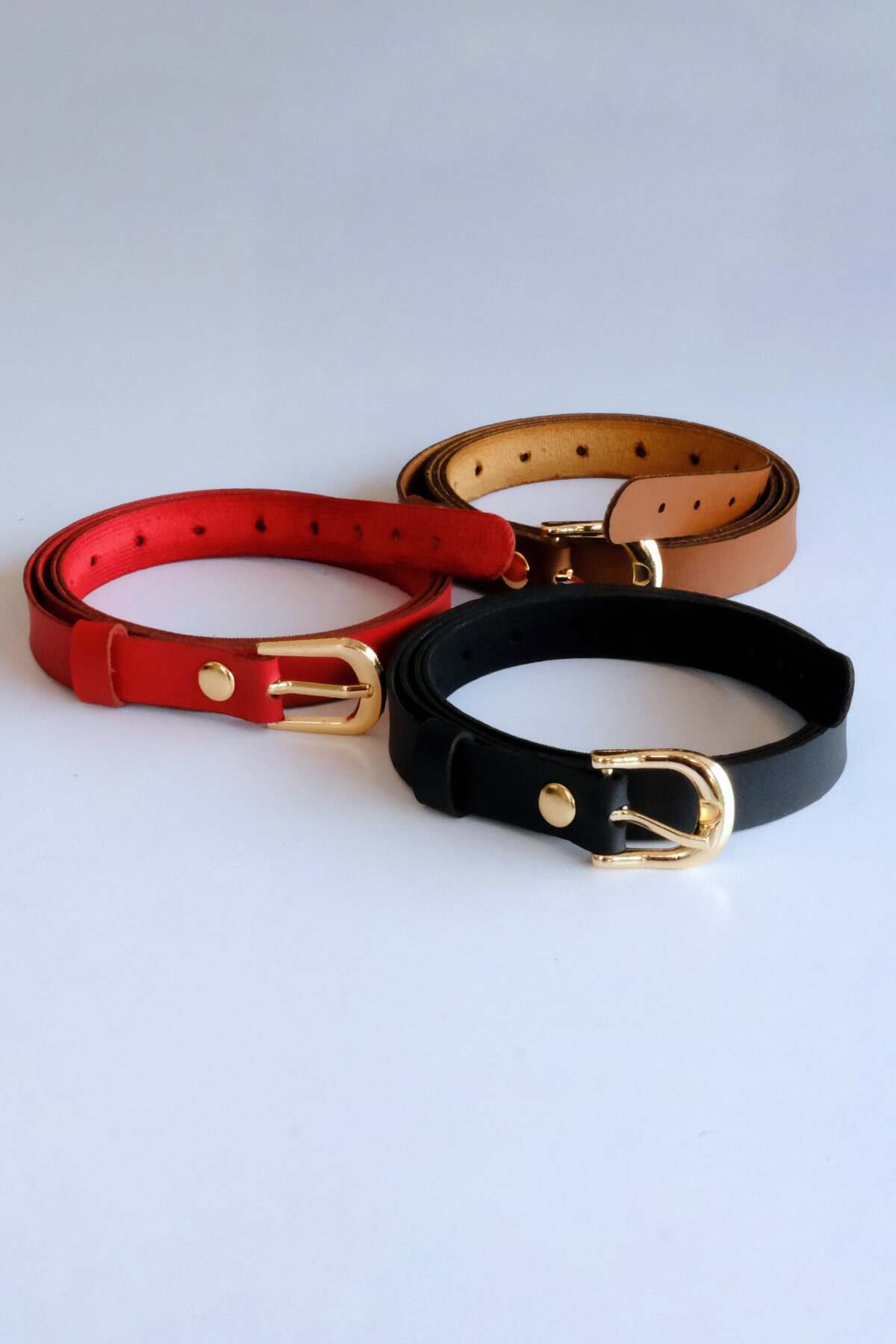 3-Piece Belt Set, Black – Red and Tan Belt (Gold Accessory)