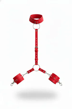Red Whip - Handcuffs Leather Collar Binding Set - APFT743