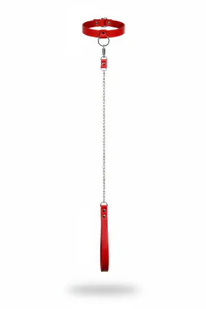 Red Choker Leather Chain Detailed Necklace - APFT774