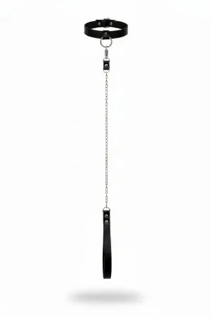 Black Choker Leather Chain Detailed Neck Collar - APFT774