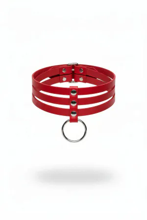 Red Choker Leather Choker with Big Ring Detail - APFT971