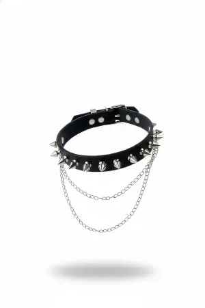 Black Choker Studded Chain Leather Choker - APFT975