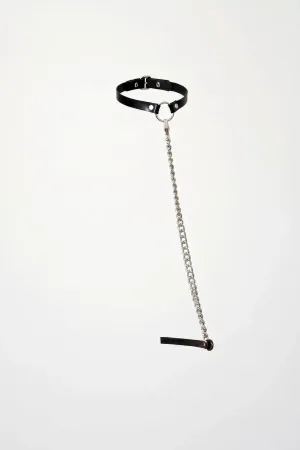 Thick Leather Choker with Black Choker Chain Detail - APFT428