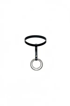Black Choker Leather Choker with Big Ring Detail - APFT400