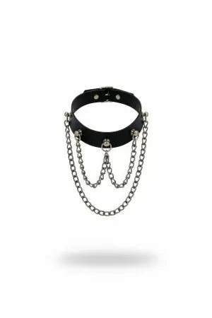 Black Choker Studded Multi-Layered Chain Choker - APFT1042