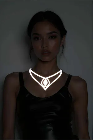 White Reflective Drop Choker Necklace, Elegant Laser Cut Necklace - APFT1410
