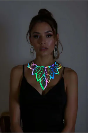 Rainbow Reflective Large Leaf Choker Necklace, Stylish Laser Cut Necklace - APFT1417