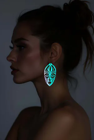 Rainbow Reflective Ethnic Face Earrings, Stylish Laser Cut Earrings - APBJ022