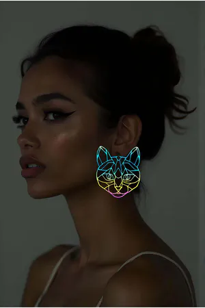 Rainbow Reflective Abstract Cat Face Earrings, Stylish Laser Cut Earrings - APBJ017