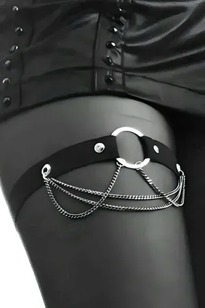 Leg Garter with Chain - Adjustable Black Faux Leather Thigh Harness