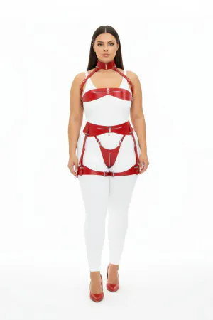 Plus Size Red Women's Harness Suit with Sexy Leather Staple Detail - APFT849