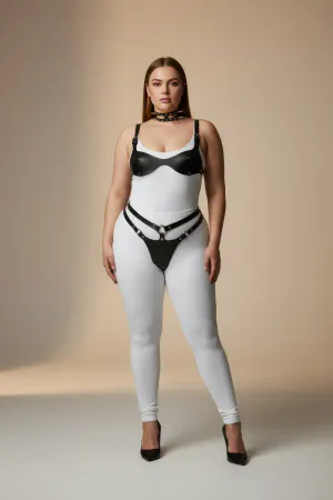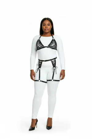 Plus Size Black Women's Leather Harness Set with Garter Detail - APFT1130
