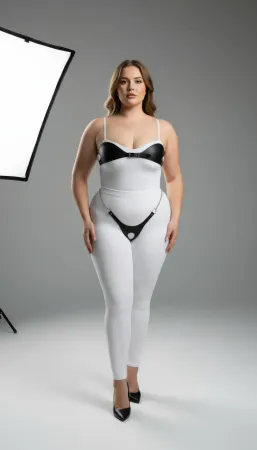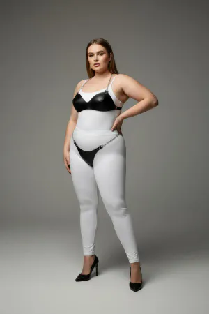 Plus Size Black Women's Harness Suit with Chain Detail and Fancy Leather Look - APFT1169