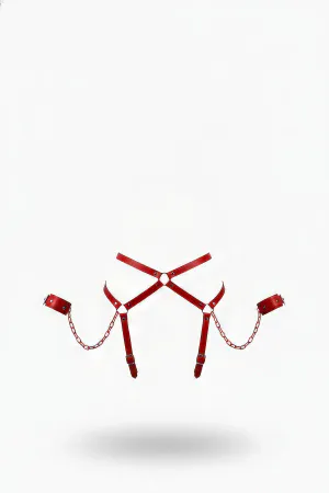 Red Harness Suit Chain Detailed Handcuffed Body Accessory - APFT708