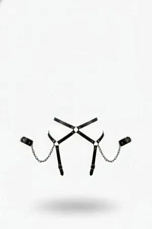 Black Harness Suit Chain Detailed Cuffed Body Accessory - APFT772