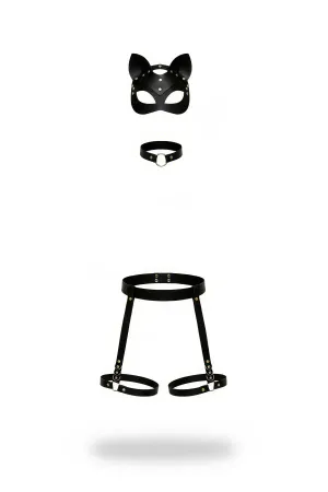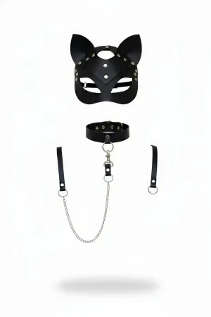 Black Harness Suit with Cat Mask and Chain Detail - APFT784