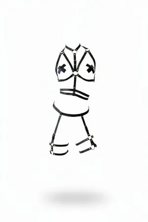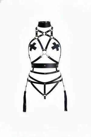 Black Harness Suit Leather Chain Detailed Body Accessory - APFT456
