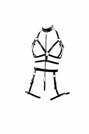 Black Harness Suit Leather Chain Detailed Body Accessory - APFT454