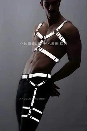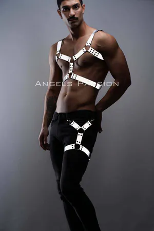 Men's Harness Set with Reflective Reflective in the Dark, Men's Chest and Leg Harness Set - APFTM198