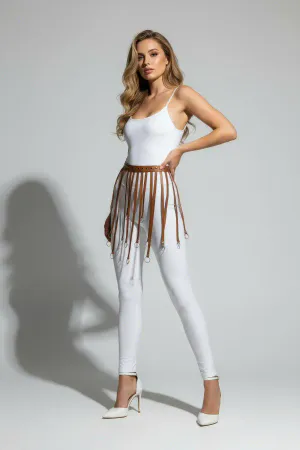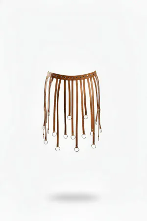 Brown Skirt with Long Tassels and Studded Detail with Buckle - APFT637
