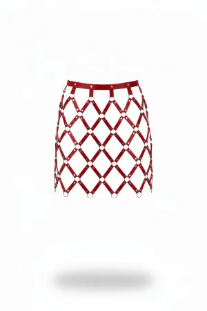 Red Skirt Leather Argyle Patterned Skirt with Hoop Detail Mini Skirt - APFT694