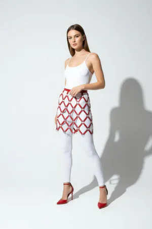 Red Skirt Lattice Patterned Skirt with Hoop Detail Mini Skirt - APFT694