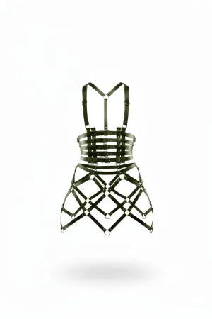 Black Skirt Faux Leather Skirt with Multi-Belt Cage Structure - APFT785